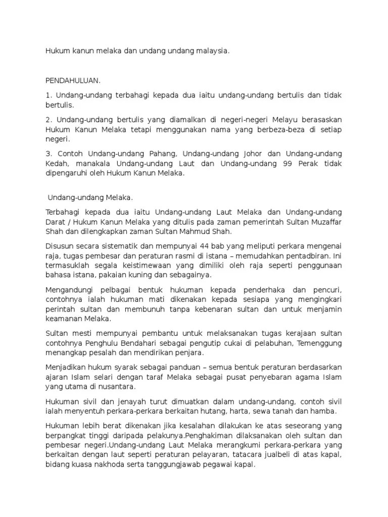 Hukum kanun melaka adalah sebuah perlembagaan bertulis tanah melayu. Selain itu, hukum kanun melaka penting sumber rujukan bagi menentukan . Mari kita membaca kajian pakar sejarah.